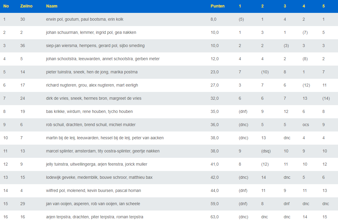 Donderdag en vrijdag zijn de wedstrijden met veel wind verzeild. Op zaterdag en zondag was er minder wind en blauwe luchten. Team 30 heeft hiervan maximaal weten te profiteren en hebben de Kleine Sneekweek 2019 gewonnen!